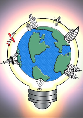 Based on the concept: Ideas shape the World. I create a huge bulb which covers the Earth to show demonstrate the concept: the world changed due to the technology (idea). The halo effect around the bulb used to visualize the moment when the idea “buzz!” – the moment that changes the world. I draw five buildings which build up in five period of time to show the development of technology from ancient time up to now. A ship, a middle-class car, an air plane and satellite show that technology is for everyone, from poor to rich, from youngster to old-school, from worker to CEO. Every changes and opportunity is all start with an idea. So, be creative and don not afraid to try the new things.